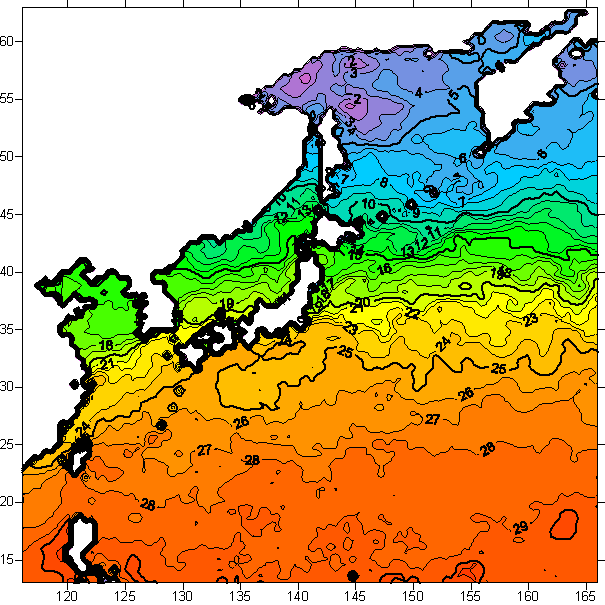 o 2005년 11월 08일 북서태평양 광역해양 수온분포 입니다.