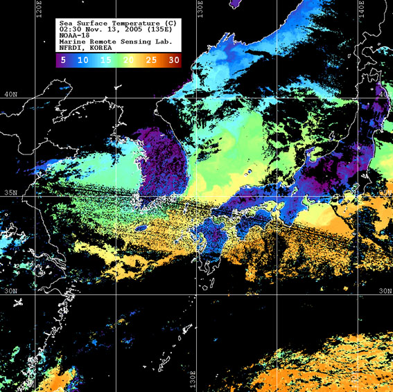 더 많은 위성 수온영상자료(1996년-현재)는 해양원격탐사실 홈페이지로