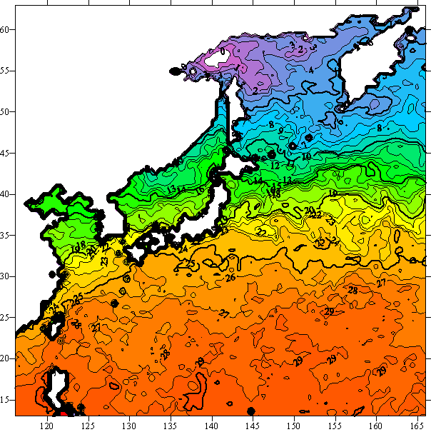 o 2005년 11월 10일 북서태평양 광역해양 수온분포 입니다.