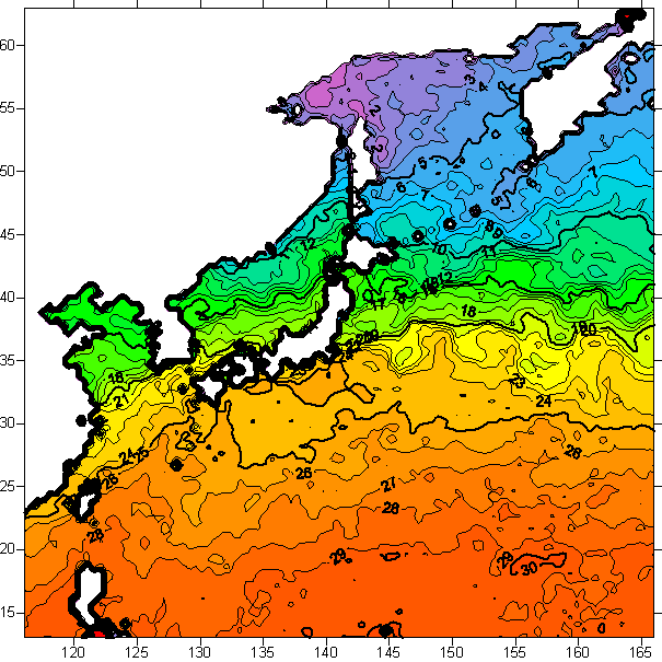o 2005년 11월 19일 북서태평양 광역해양 수온분포 입니다.