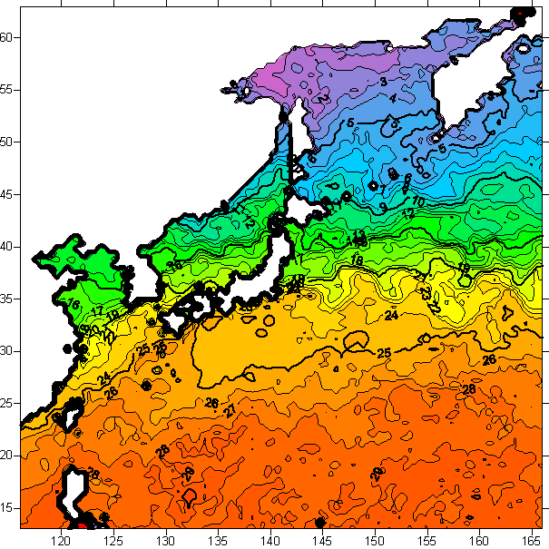 o 2005년 11월 20일 북서태평양 광역해양 수온분포 입니다.
