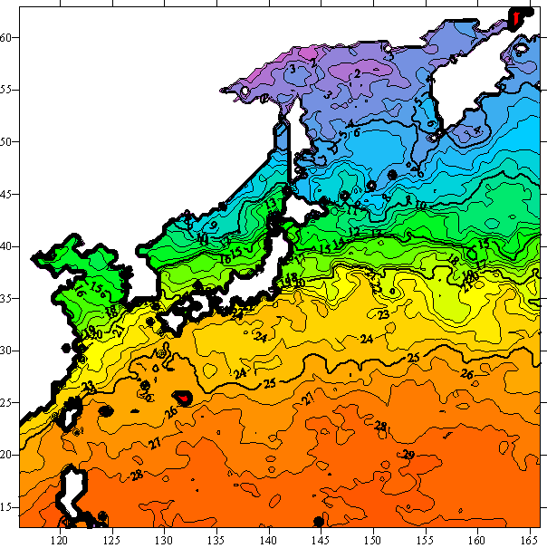 o 2005년 11월 23일 북서태평양 광역해양 수온분포 입니다.