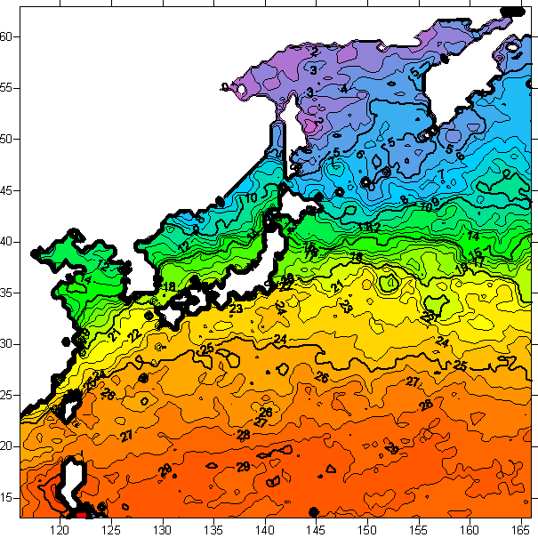 o 2005년 12월 02일 북서태평양 광역해양 수온분포 입니다.