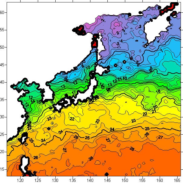 o 2005년 12월 10일 북서태평양 광역해양 수온분포 입니다.