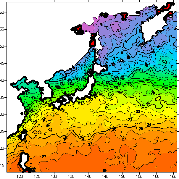 o 2005년 12월 12일 북서태평양 광역해양 수온분포 입니다.