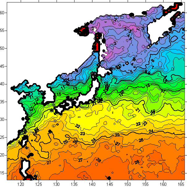 o 2005년 12월 18일 북서태평양 광역해양 수온분포 입니다.
