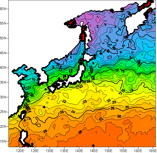 o 2005년 12월 19일 북서태평양 광역해양 수온분포 입니다.