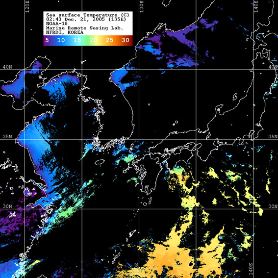 더 많은 위성 수온영상자료(1996년-현재)는 해양원격탐사실 홈페이지로