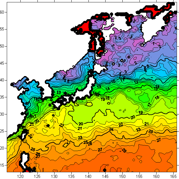 o 2006년 1월 4일 북서태평양 광역해양 수온분포 입니다.