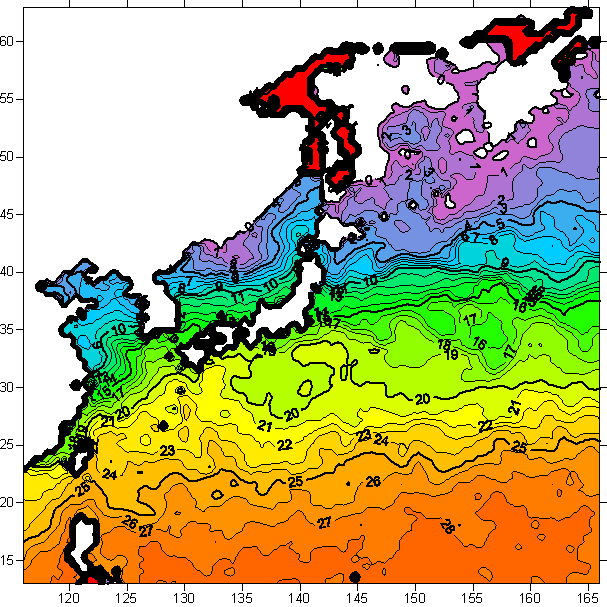 o 2006년 1월 5일 북서태평양 광역해양 수온분포 입니다.