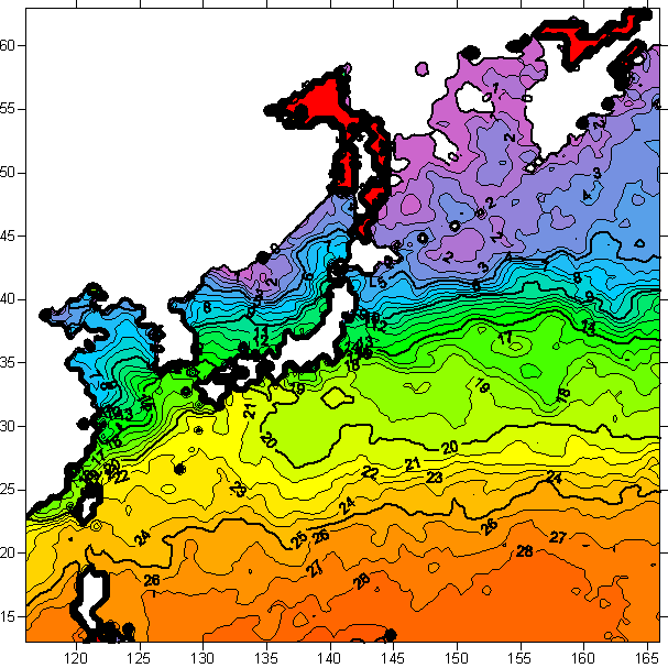 o 2006년 1월 9일 북서태평양 광역해양 수온분포 입니다.