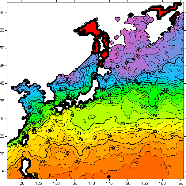o 2006년 1월 10일 북서태평양 광역해양 수온분포 입니다.