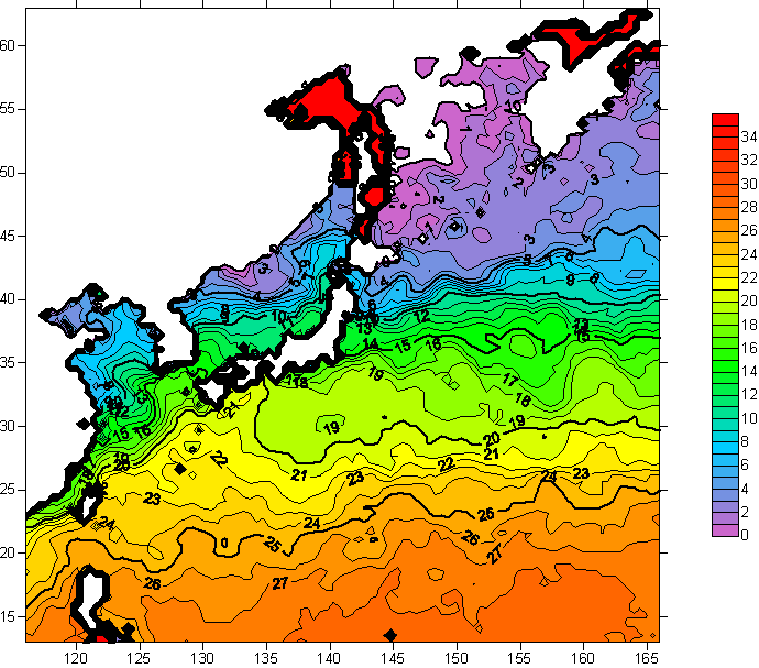 o 2006년 1월 11일 북서태평양 광역해양 수온분포 입니다.