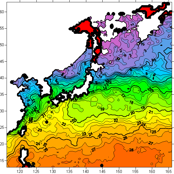 o 2006년 1월 12일 북서태평양 광역해양 수온분포 입니다.