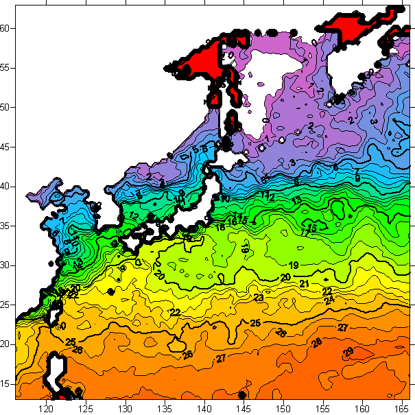 o 2006년 1월 14일 북서태평양 광역해양 수온분포 입니다.