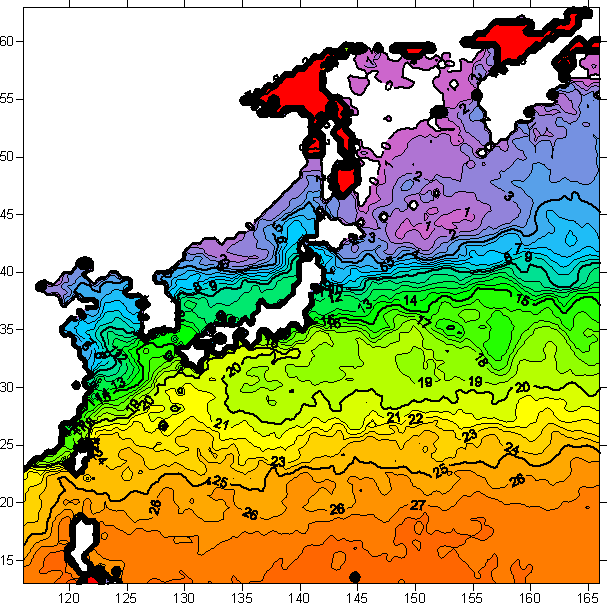 o 2006년 1월 15일 북서태평양 광역해양 수온분포 입니다.