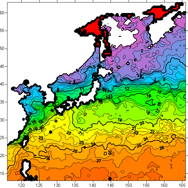 o 2006년 1월 16일 북서태평양 광역해양 수온분포 입니다.