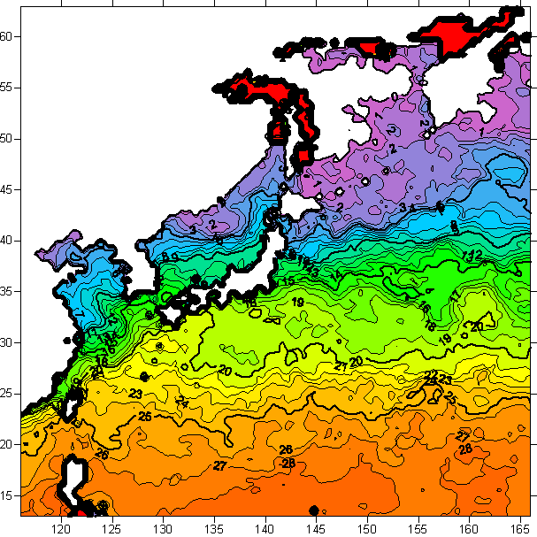 o 2006년 1월 20일 북서태평양 광역해양 수온분포 입니다.