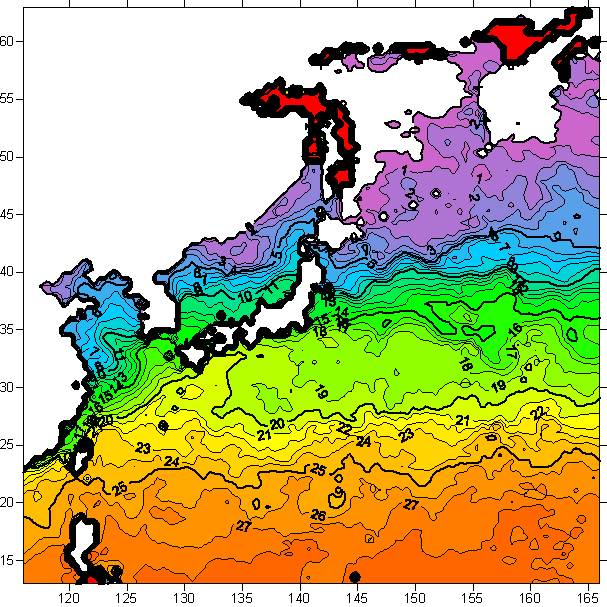 o 2006년 1월 21일 북서태평양 광역해양 수온분포 입니다.