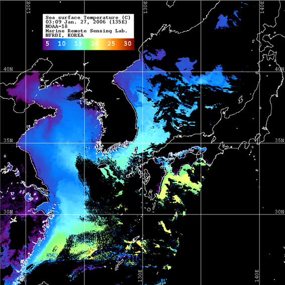더 많은 위성 수온영상자료(1996년-현재)는 해양원격탐사실 홈페이지로