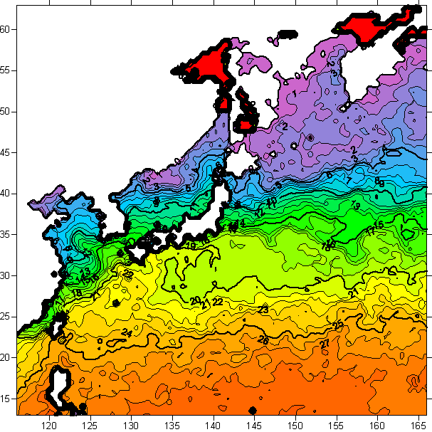 o 2006년 1월 28일 북서태평양 광역해양 수온분포 입니다.