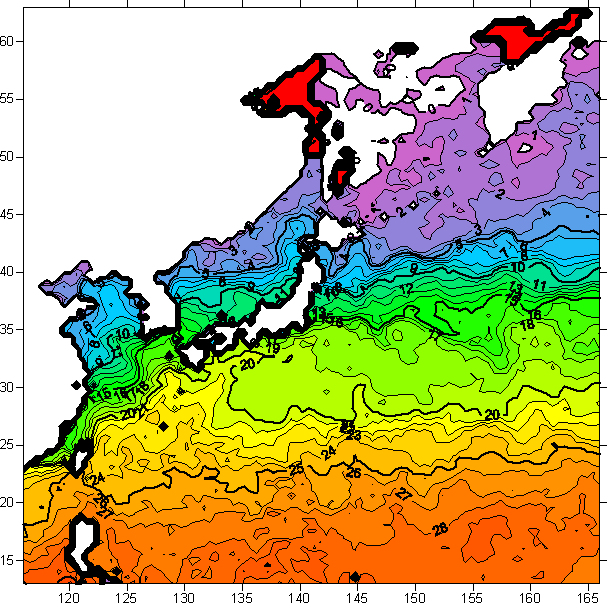 o 2006년 1월 30일 북서태평양 광역해양 수온분포 입니다.