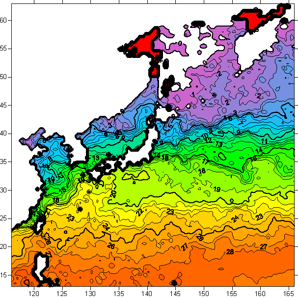 o 2006년 1월 31일 북서태평양 광역해양 수온분포 입니다.