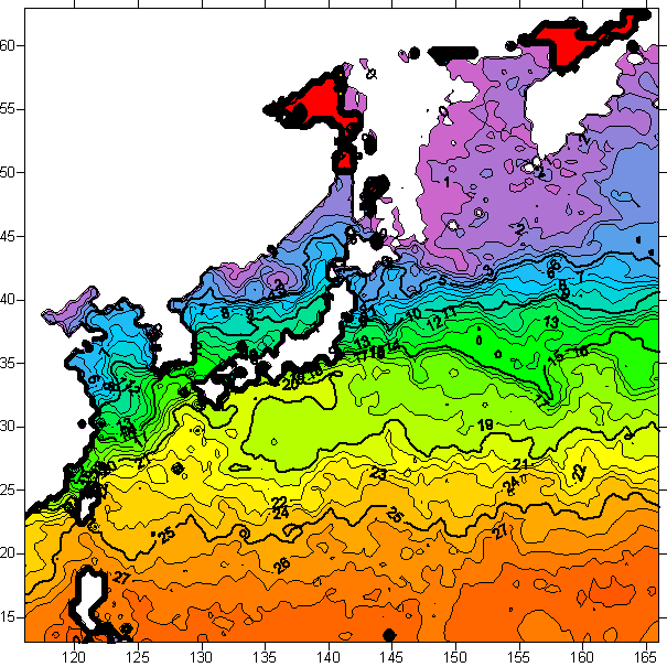 o 2006년 2월 01일 북서태평양 광역해양 수온분포 입니다.