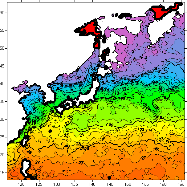 o 2006년 2월 02일 북서태평양 광역해양 수온분포 입니다.