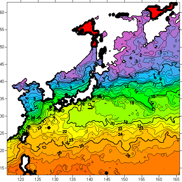 o 2006년 2월 03일 북서태평양 광역해양 수온분포 입니다.