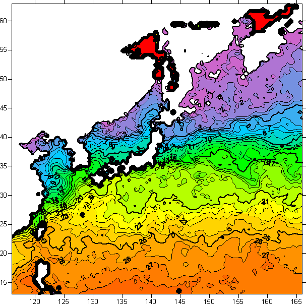 o 2006년 2월 06일 북서태평양 광역해양 수온분포 입니다.