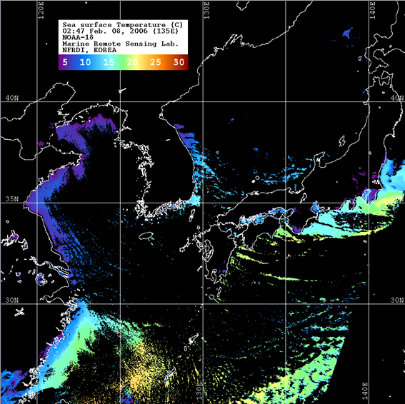 더 많은 위성 수온영상자료(1996년-현재)는 해양원격탐사실 홈페이지로