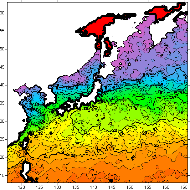 o 2006년 2월 10일 북서태평양 광역해양 수온분포 입니다.