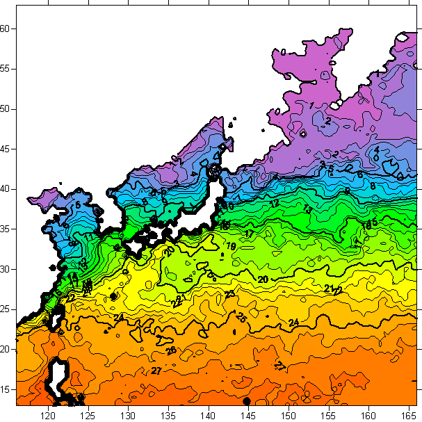 o 2006년 2월 17일 북서태평양 광역해양 수온분포 입니다.