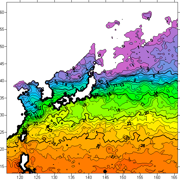 o 2006년 2월 28일 북서태평양 광역해양 수온분포 입니다.