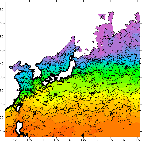 o 2006년 3월 09일 북서태평양 광역해양 수온분포 입니다.