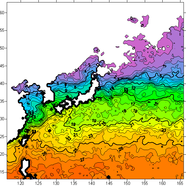 o 2006년 3월 10일 북서태평양 광역해양 수온분포 입니다.