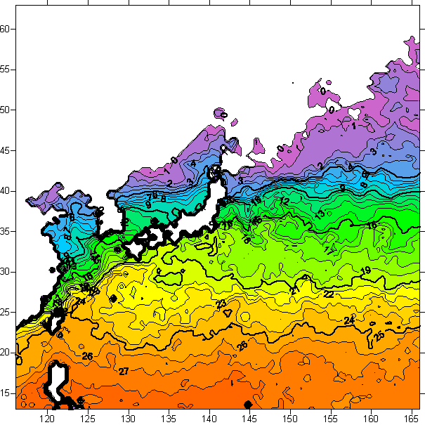 o 2006년 3월 11일 북서태평양 광역해양 수온분포 입니다.