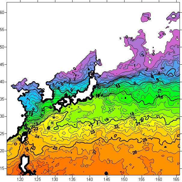 o 2006년 3월 14일 북서태평양 광역해양 수온분포 입니다.