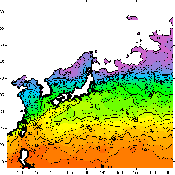 o 2006년 3월 20일 북서태평양 광역해양 수온분포 입니다.