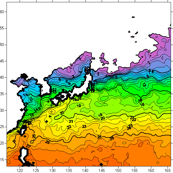 o 2006년 3월 21일 북서태평양 광역해양 수온분포 입니다.