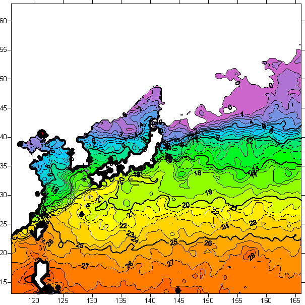 o 2006년 3월 23일 북서태평양 광역해양 수온분포 입니다.