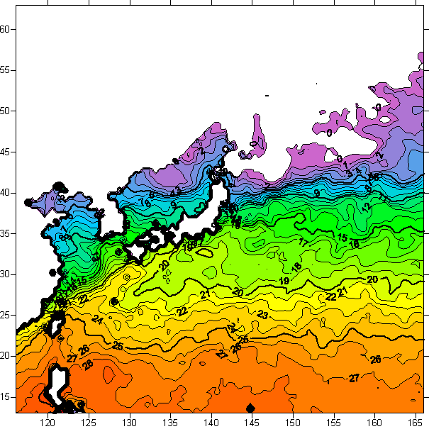 o 2006년 3월 24일 북서태평양 광역해양 수온분포 입니다.