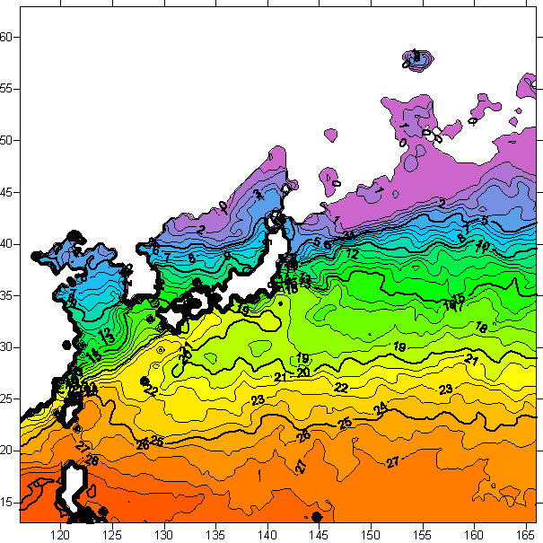 o 2006년 3월 28일 북서태평양 광역해양 수온분포 입니다.