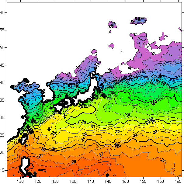o 2006년 3월 29일 북서태평양 광역해양 수온분포 입니다.
