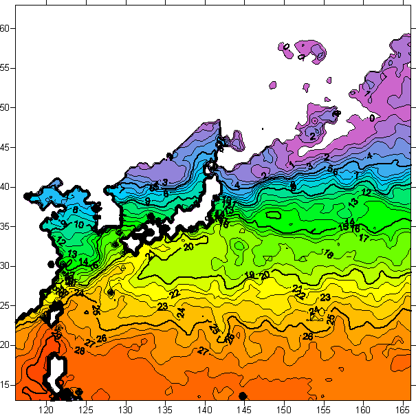 o 2006년 4월 13일 북서태평양 광역해양 수온분포 입니다.