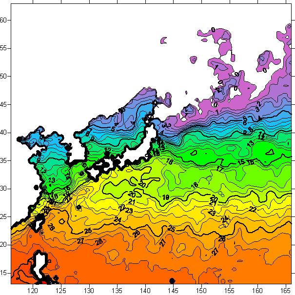 o 2006년 4월 14일 북서태평양 광역해양 수온분포 입니다.