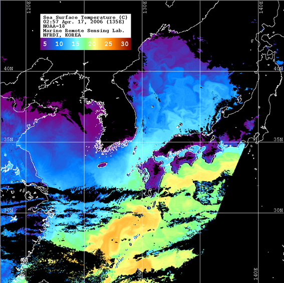 더 많은 위성 수온영상자료(1996년-현재)는 해양원격탐사실 홈페이지로