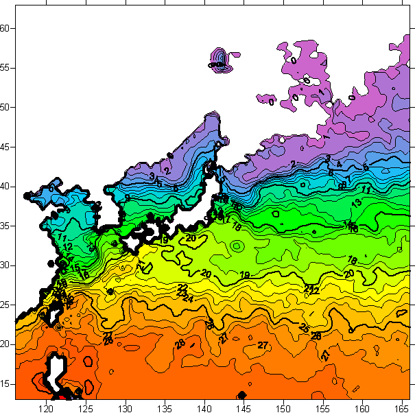 o 2006년 4월 16일 북서태평양 광역해양 수온분포 입니다.