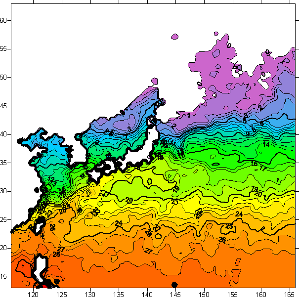 o 2006년 4월 19일 북서태평양 광역해양 수온분포 입니다.